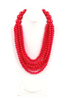 Round Bead Layered Statement Necklace and Earring Set Red - Pack of 6